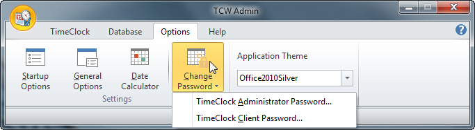 Click on Options and Change Password, this will give you a choice to set up the option to set the Administrator or Employee Client Passwords: