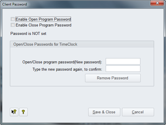 If you do use this method over the Internet Time Servers we suggest you select both checkboxes they will control password use for the employee tools for opening and closing.