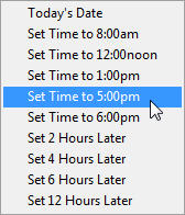 The small "…" button next to the date/time entry will give you a quick entry for today's date and some often used times as seen below.