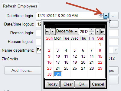 The small down arrow button by the date/time entries opens a calendar to select a date from as seen below.