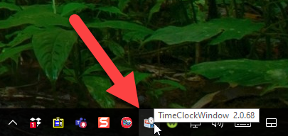 The Tray Icon is where the employees click to open TimeClockWindow to punch in and out with. It should be visible at the bottom right corner of your screen like this: