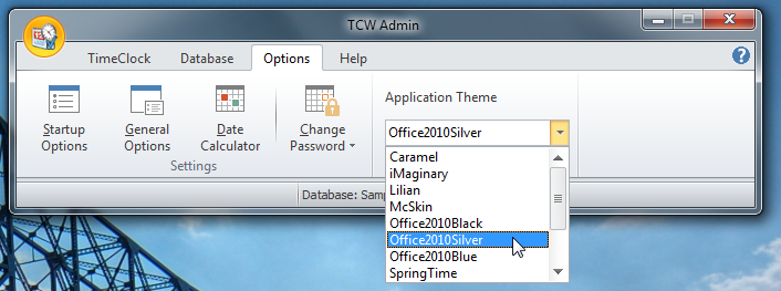 The Application Theme tool will allow you to pick a different look for the TimeClockWindow programs.