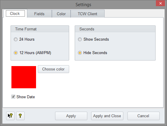 The Clock Tab allows you to set the display of the Employee Client program's time display, date and text color as seen below.