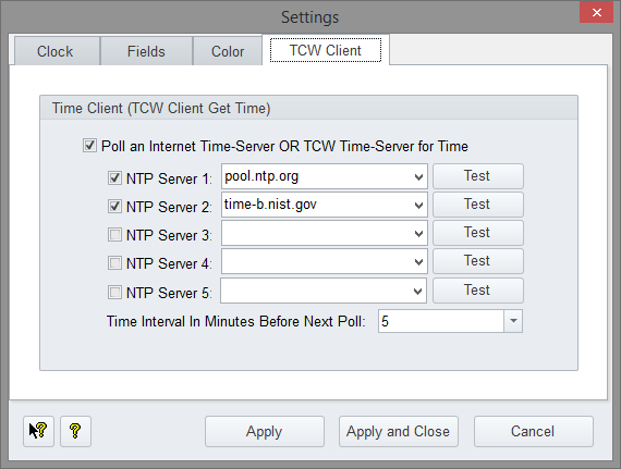 The TCW Client Tab allows you to set up and use the Internet time servers for time punches.