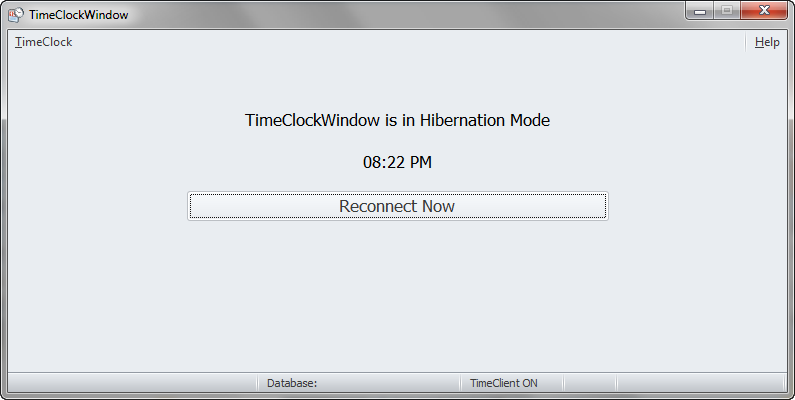 When in Hibernate mode the screen will look like seen below. Clicking Reconnect Now will return to normal.