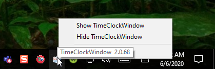 When TimeClockWindow is started and the employee punches in the first time and then clicks the Close TimeClockWindow it minimizes to the Tray at the bottom right of the screen.